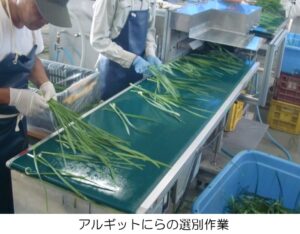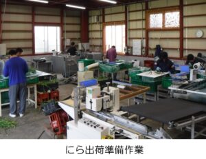 • 当初は野菜や花卉を中心に多品目を栽培し直売所で販売していたが、競合者が多く、時期や品目によっては大量の売れ残りが発生し、生産計画に見合った販売計画を立てることが困難となったため、県推奨野菜の最低価格保証のある「海藻アルギットにら」の栽培に着手。